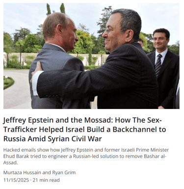 Jeffrey Epstein and the Mossad: How The Sex-Trafficker Helped Israel Build a Backchannel to Russia Amid Syrian Civil War